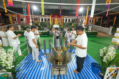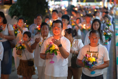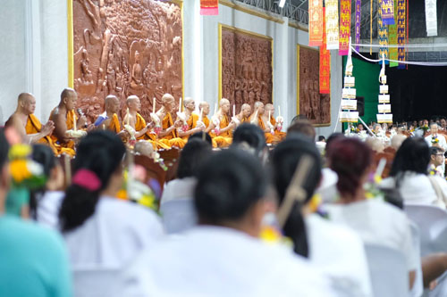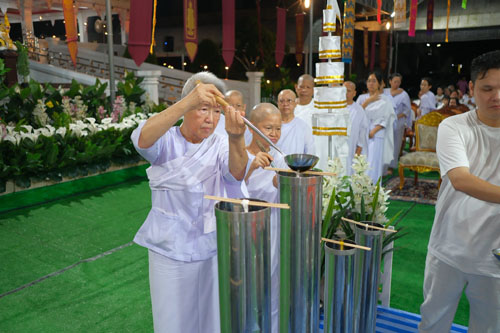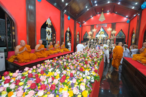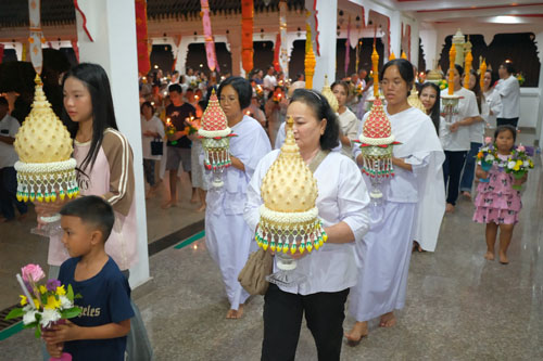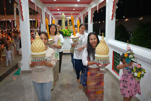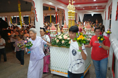 และทางวัดได้จัดพิธีหล่อเทียนพรรษา  เวียนเทียนรอบอุโบสถ