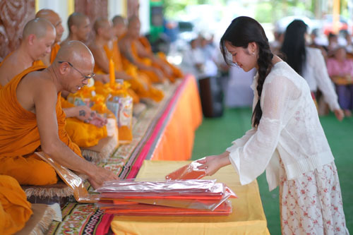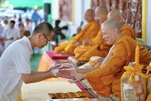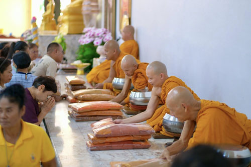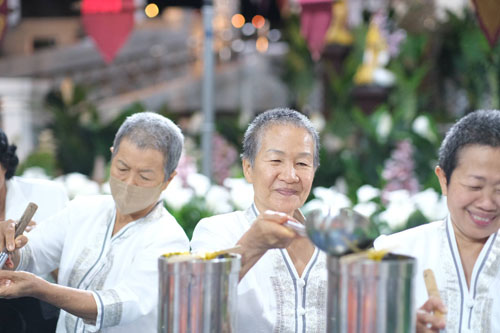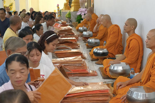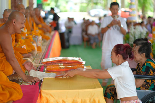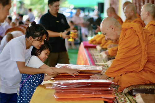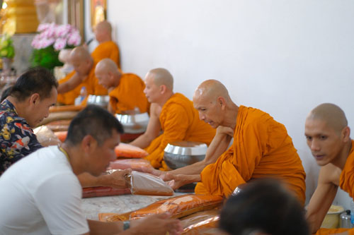 ผู้มีจิตศรัทธาร่วมถวายสังฆทาน  ภัตตาหารในช่วนเช้า